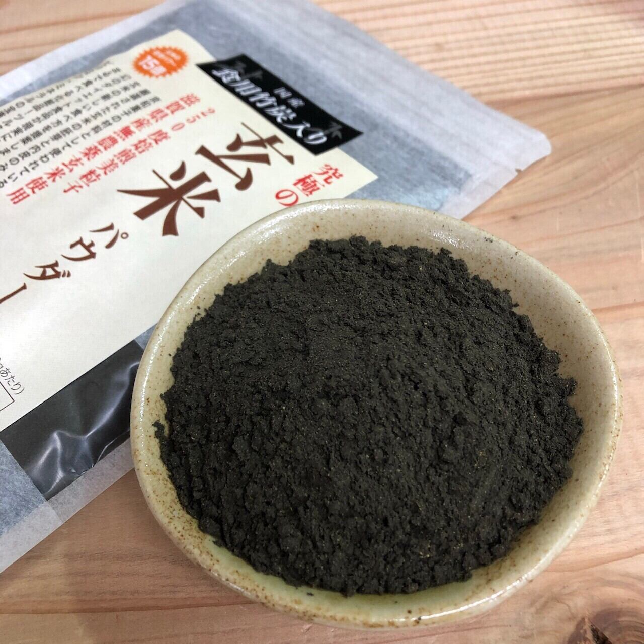 原材料名:滋賀県産の無農薬玄米、静岡県産竹炭パウダー